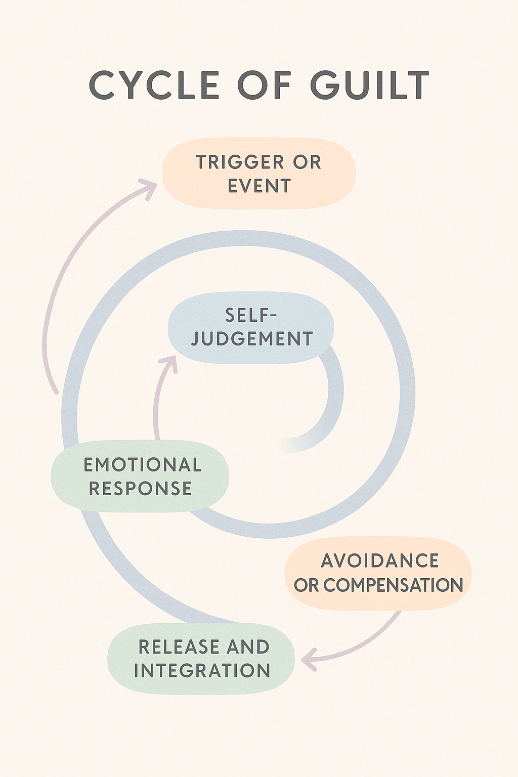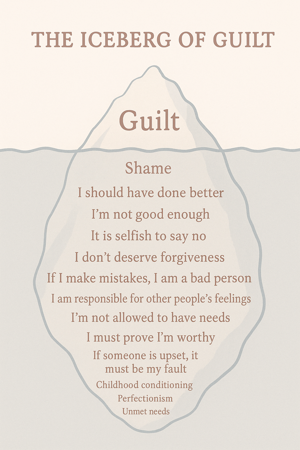 This is why guilt can feel so difficult to move through. It is not only about the action or choice you regret, it is about the deeper story you tell yourself: that you failed, that you hurt someone, that you should have been different, that you should meet others' expectations.