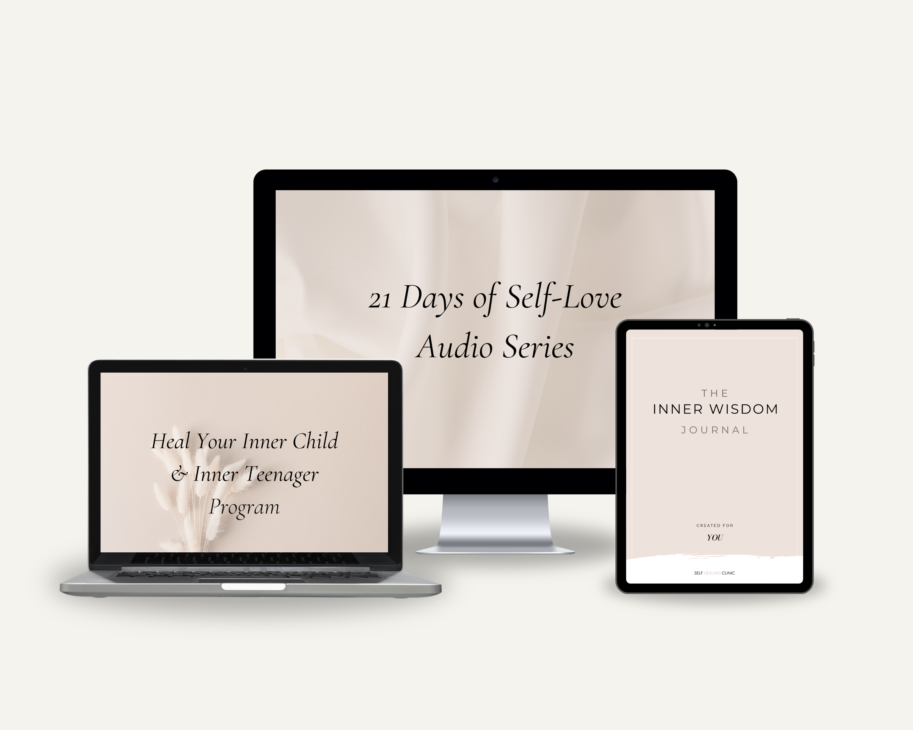 You will get immediate access to the 'Heal Your Inner Child Program' and the '21 days of Self-Love Audio Series', and the Inner Wisdom Journal.